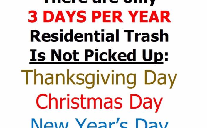 No Trash Pickup Christmas Day! December 24, 2020fairlingtonmews Please plan accordingly and don’t put your trash out till Saturday! Share this: Click to share on X (Opens in new window) X Click to share on Facebook (Opens in new window) Facebook Like Loading...