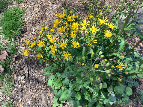 Golden Ragwort – a spring bloomer that does well in sunny or shaded areas. https://mgnv.org/plants/ground-cover/packera-aurea-golden-ragwort/