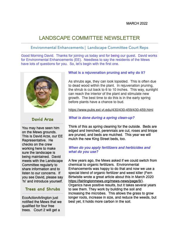 Hot off the press is the Landscape Committee’s newsletter for April!